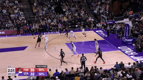 面对戈贝尔的防守,艾顿那一手中距离的技术堪称天克,各种翻身各种进,辅佐小里在临近半场结束时追平比分。